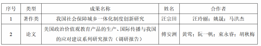 (通讯员:陈越)近日,第十四届湖北省社会科学优秀成果奖评选结果揭晓,我院在省部级科研奖励上再获新突破,成功斩获二等奖2项。获奖成果分别为傅安洲教授领衔的系列研究报告《美国政治价值观教育产品的生产、国际传播与我国的应对建议》、汪宗田教授的著作《我国社会保障城乡一体化制度创新研究》。这是学院首次同年度获得两项省级二等奖等次,标志着我院科研创新能力迈上新台阶。