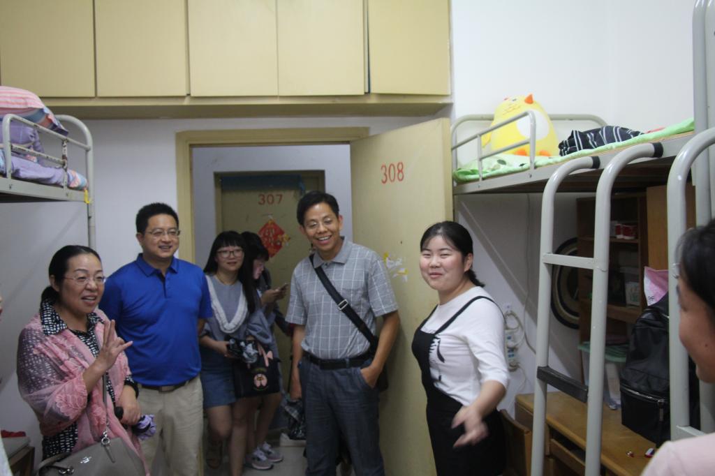 在宿舍走访过程中,新生们向老师们介绍了自己的基本情况,学院领导老师们亲切询问了新生入学后的生活方面等适应情况,并叮嘱新生们好好休息,调整好自己的状态,尽快投入到新的学习和生活中去。