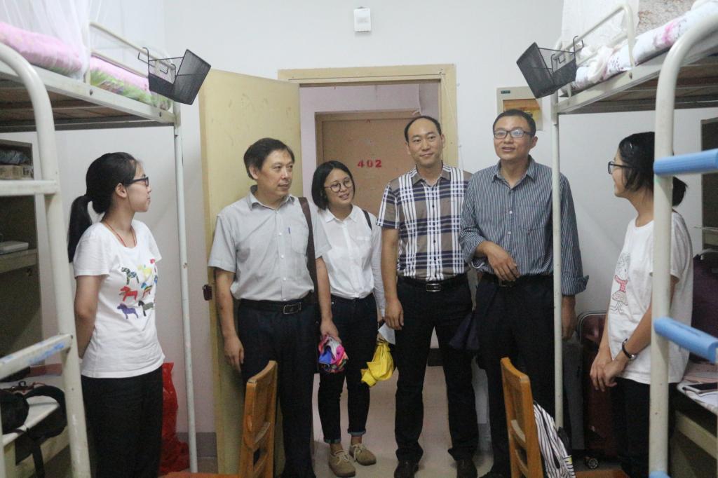 9月3日下午,学院领导高翔莲、侯志军、张存国、阮一帆、陈军、黄少成深入2017级本科生和研究生新生宿舍,看望学生。辅导员王艳波、兼职辅导员董树婷以及团学联主要学生干部参加走访。