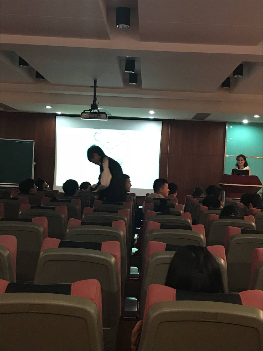 宣讲会借视频《跨越五千年的长跑》引入,气势磅礴的为大家展示了中华文化上下五千年的精华,极具渲染力的引出了我们的主题。接着,团队成员就文化自信是什么,为什么要文化自信即文化自信的重要性,以及十九大报告中习近平总书记有关文化自信的论述展开了描述。同时在宣讲过程中,团队成员与台下观众积极互动,提高了大家的积极性和参与度,大大提升了宣讲效果。随后,团队成员向观众展示了影视文化对于文化自信的影响,并通过一正一反两个例子进一步说明影视文化对于文化自信的影响,用生动的事例让台下聆听者娱乐之余有所反思。在“你画我猜”游戏环节中,团队将文化因素融入到游戏之中,将游戏用词设置为豆瓣2016评分最高的华语电影和外语电影,积极与在场学生进行互动。最后,团队成员为如何促进影视文化对于文化自信的积极作用分别从国家、社会、个人三个层面提出可行性建议。