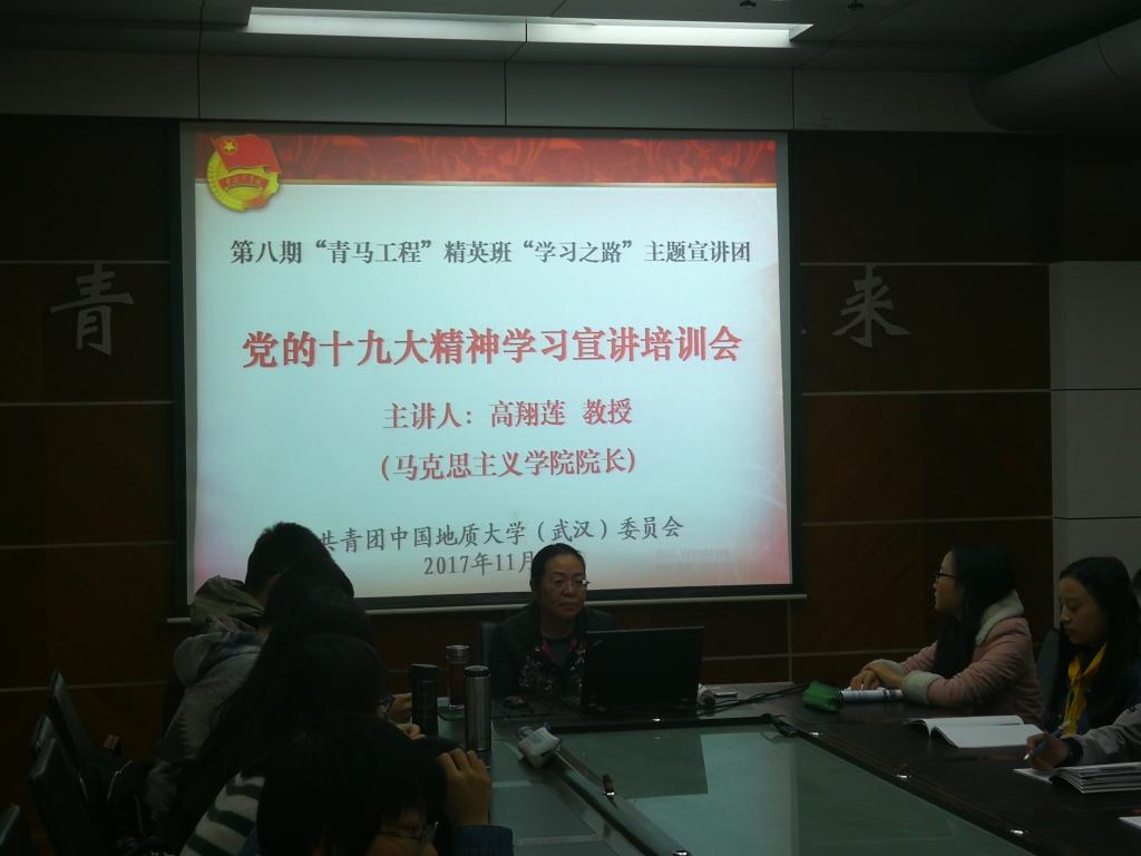 11月19日,高翔莲院长在校团委青年之家为校“青马工程”精英班做主题宣讲,讲解十九大精神。
