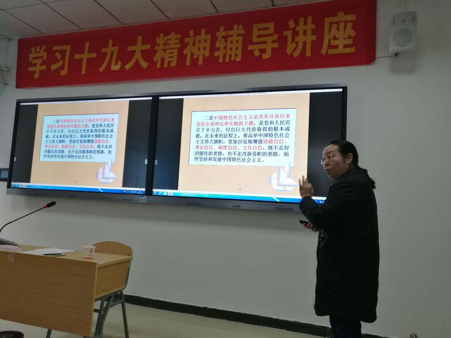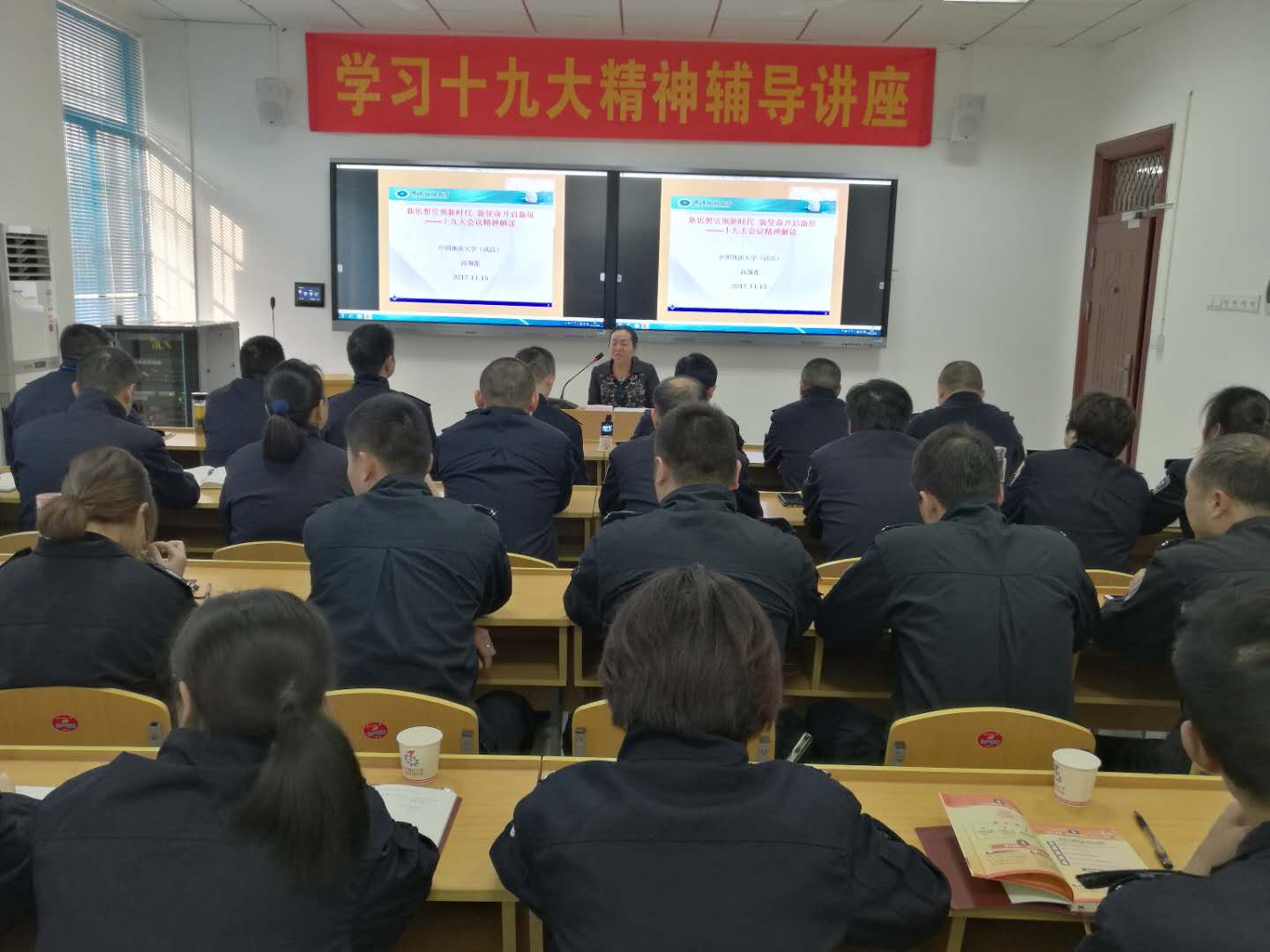 11月16日,高翔莲院长为喻家山派出所全体公安干警作十九大精神辅导报告。