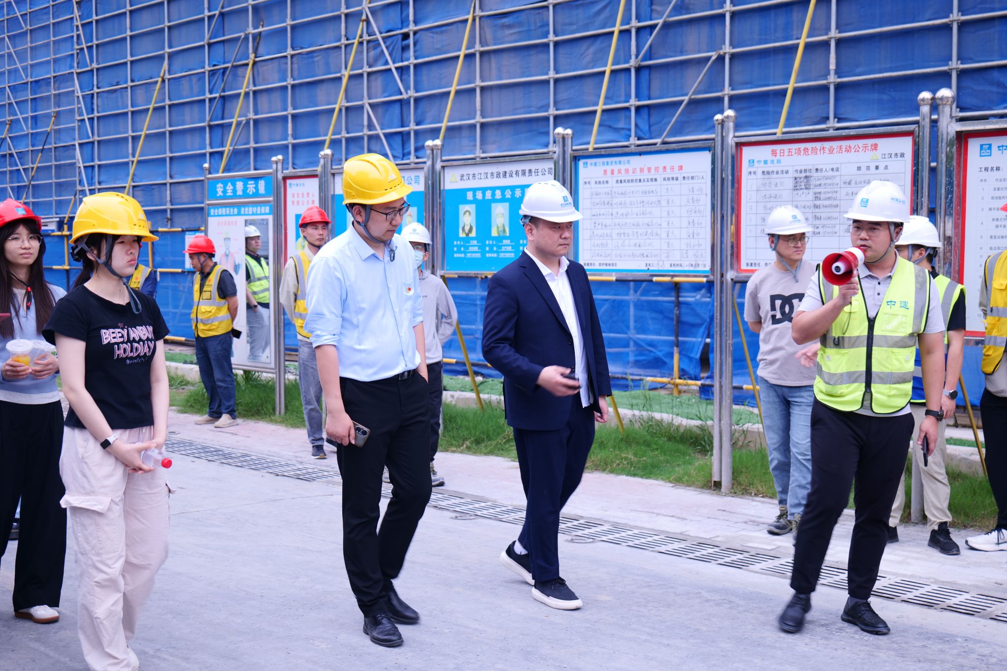 我院师生参观武汉兴达房屋开发实业股份有限公司发展历程展览馆,深入了解企业在城市更新、房地产开发、智慧科技等领域的发展历程。之后,在工作人员的带领下,参观武汉金融街集团在建恒江雅筑项目。在恒江雅筑项目施工现场,同学们近距离观摩工程建设与管理流程,直观感受行业前沿动态。