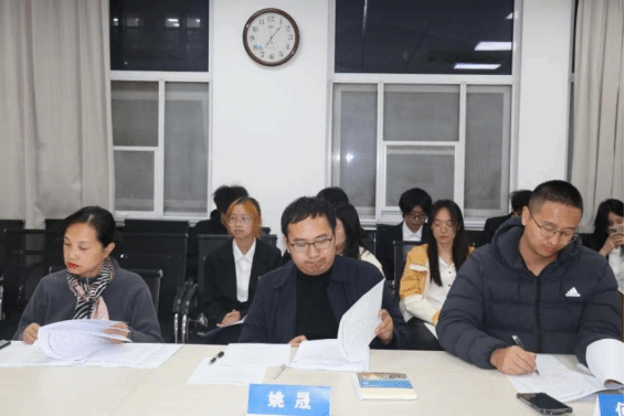 在点评环节,何晓龙老师提出,团会设计不能纸上谈兵,要充分调研支部成员意见,将成员需求落实到位;姚晟老师强调,团会设计要既传承又创新,以传统方式夯实团员理论基础,以创新模式吸引团员积极参与,充分发挥团会的引领作用;王明华老师则就“如何更好结合专业知识与团会内容”等实际问题与答辩团队展开交流,建议各支部在开展团会时能充分发挥专业优势,展示马院魅力。
