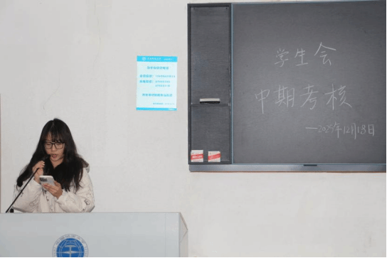 为系统总结工作成效,加强组织内部建设,促进成员交流融合,2025年12月18日,williamhill威廉希尔学生会中期考核暨学生会茶话会于北综楼211教室举行。本次活动由学生会办公室干事胡越尧、文体部干事袁梦婷主持,全体学生会成员共同参与。