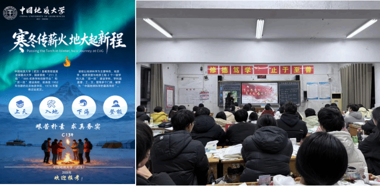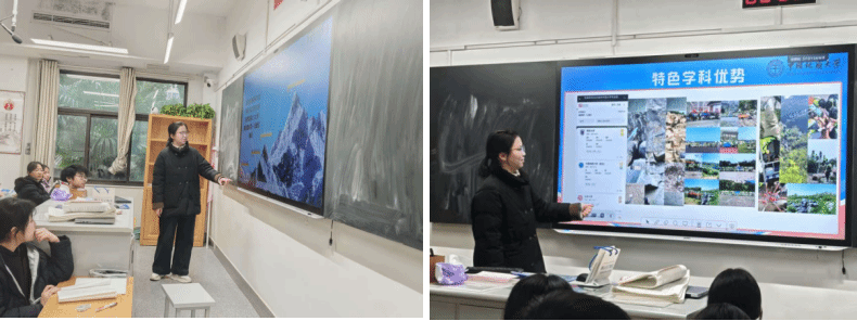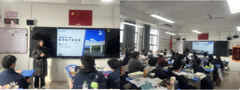 征路回声团队成员曹宝月、郭义暄寒假奔赴襄阳市第一中学、武汉市光谷第二高级中学开展招生宣讲。我们从“新工科+新文科”的培养特色入手,针对湖北本省考生整理高招干货,打磨宣讲流程。宣讲过程中,我们结合了实例展现地大“上天、下地、入海、登极”的学科实力,既讲地质工程专业等特色专业用技术破解深地探测难题的新工科实践,也叙述人文社科以思政赋能地学人才培养的新文科路径。