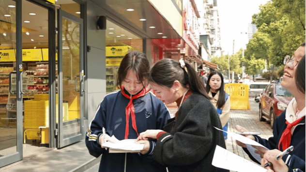 座谈结束后,马院学子带领七里中学学生及家长,跟随社区网格员深入辖区餐饮商户开展基层服务实践。过程中,协助网格员核查灭火器有效期、烟道清洗情况等安全要点,指导中学生规范记录商户信息、排查问题及整改要求;带领中学生协助发放安全宣传资料,贴心提醒商户注意用火用电用气安全。同时,结合走访实际,向中学生讲解基层网格员的工作责任与社会治理的思政要义,让中学生在面对面交流与实操中,真切体会基层服务的温度与坚守。