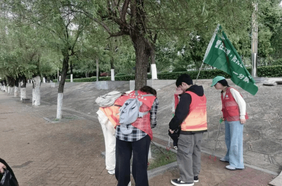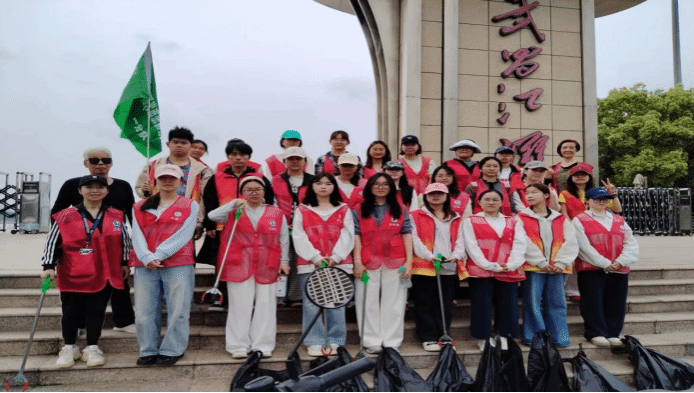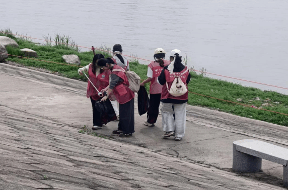 时值暮春,江风习习,志愿者们热情不减。大家沿着江岸线仔细巡查,不放过任何一个卫生死角——石缝中的烟头、草丛里的塑料碎片、滩涂上的废弃包装袋,都被一一捡拾归袋。有的志愿者蹲在护坡石阶上,用长柄夹一点一点夹出卡在缝隙中的烟蒂和瓶盖;有的两人配合,一人撑开垃圾袋,另一人清理灌木丛下堆积的泡沫碎块和废弃渔网。面对滩涂上半埋在泥沙中的塑料制品,志愿者们不嫌脏、不怕累,徒手将其拽出,分类投放。经过集中清理,江滩沿线视觉环境显著改善,岸坡恢复整洁,观景步道两侧绿化带内的隐蔽垃圾也被彻底清除。