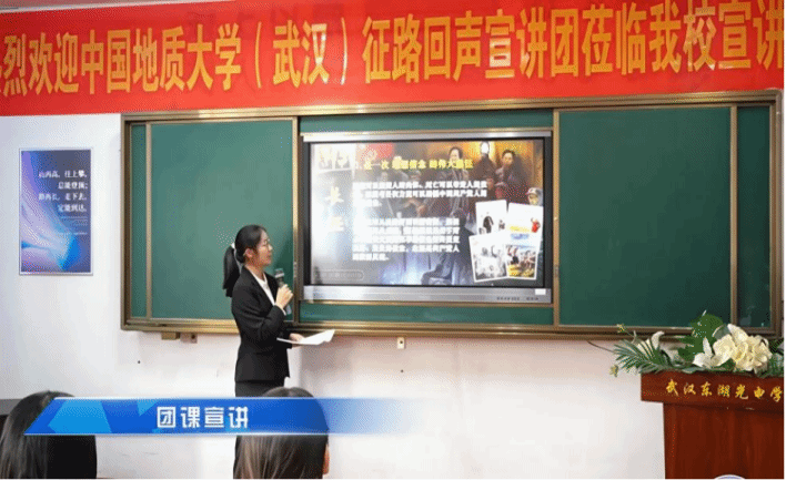 2025年11月15日,我院“红色之声”理论宣讲团征路回声团队受邀参加武汉东湖光电学校主题团课宣讲交流活动。本次宣讲以“忆长征峥嵘岁月,谱今朝奋进新篇”为主题,分别面向高一、高二年级开展两场宣讲活动,旨在通过沉浸式宣讲与互动交流,引导广大青年学生深刻领悟长征精神谱系的时代内涵与价值意蕴,进一步筑牢理想信念根基,赓续红色血脉。