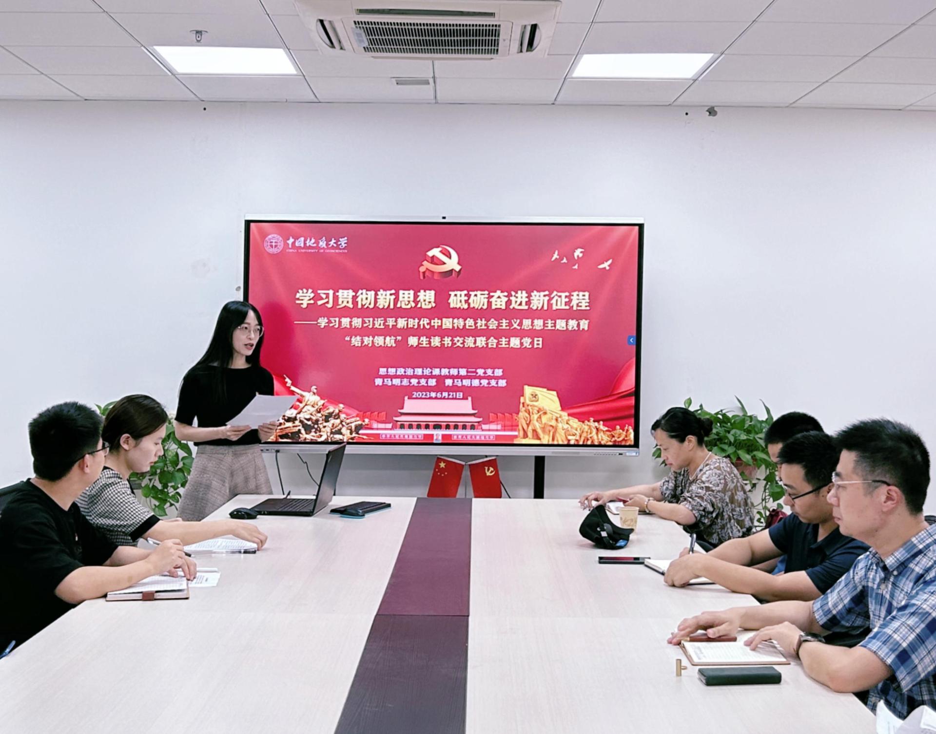 (通讯员:陈雅文、曹艺、李蔚然)2023年6月21日下午14时30分,williamhill中国(武汉)williamhill威廉希尔思想政治理论课教师第二党支部联合青马明志党支部、青马明德党支部在东教楼B1013会议室召开“学习贯彻新思想,砥砺奋进新征程”暨学习贯彻习近平新时代中国特色社会主义思想主题教育师生结对领航读书交流会,本次活动由党支部书记李蔚然同志和冯晓宇同志共同主持,师生党支部全体同志参与。