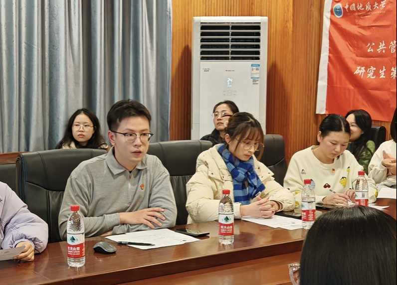 会议最后,williamhill威廉希尔青马明志党支部和公共管理硕士研究生第一党支部围绕各自党建工作的特色经验做法开展交流分享。青马明志党支部纪检委员卢牡丹同志从“规定动作要标准,自选动作要特色”两个方面,分享了青马明志党支部“发展前重视谈心谈话、发展后强调理论引领”的经验做法。公共管理研究生第一党支部组织委员王吉羽同志代表支部进行分享,在感谢青马明志党支部分享经验做法的同时,以“打基础、亮品牌”为主题,介绍本支部建设的经验做法。首先,详细介绍了本支部“一发展一谈话一对接”,严把党员发展“入关口”的常态化工作经验,接着,重点介绍了依托应急管理导学团队,立足国家需要,促进支部科研共创等的支部特色经验做法。