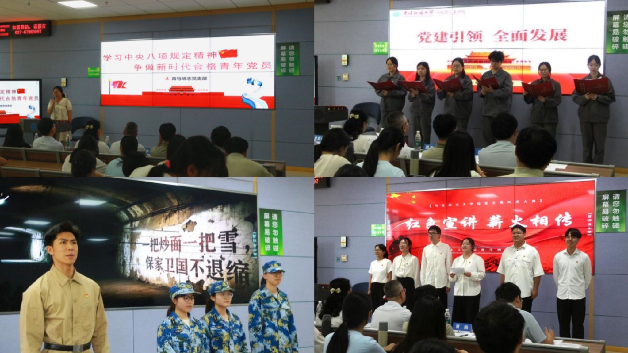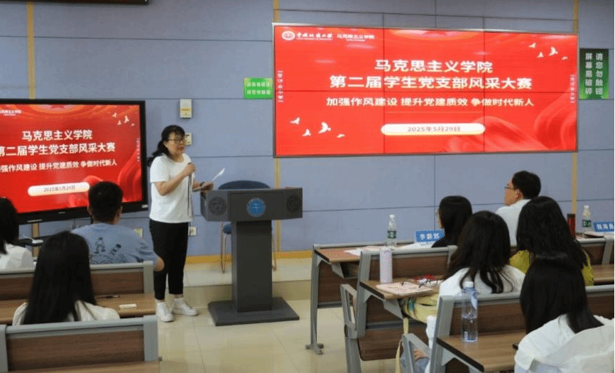 在“主题党日”风采展示环节,各党支部通过创新形式积极展现风采:以专题党课展现对中央八项规定精神实质的理解,通过情景剧构建今日地大学子与革命先烈的跨时空对话,借助诗朗诵抒发“请党放心,强国有我”的青春誓言,等等。这些生动的呈现方式,不仅使党支部风采大赛成为增强党员凝聚力的精神纽带,更使广大党员在沉浸式体验中淬炼了党性,进一步坚定了“四个自信”,增强了“四个意识”,坚定了大家为实现中华民族伟大复兴接续奋斗的信念和决心。
