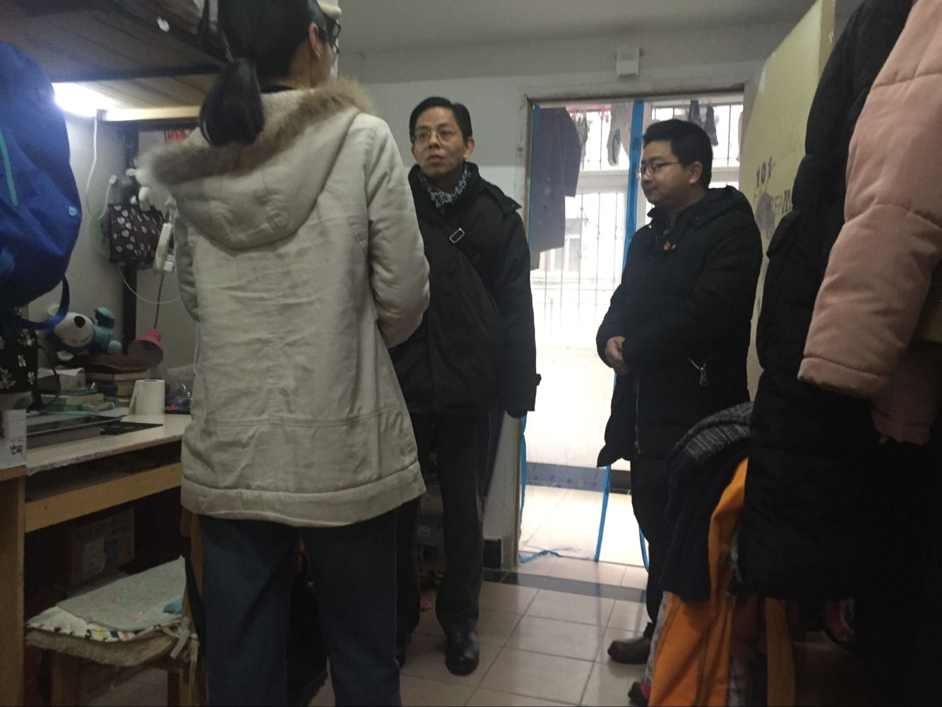 图三:副院长陈军、副书记黄少成检查研究生宿舍,慰问留校研究生
