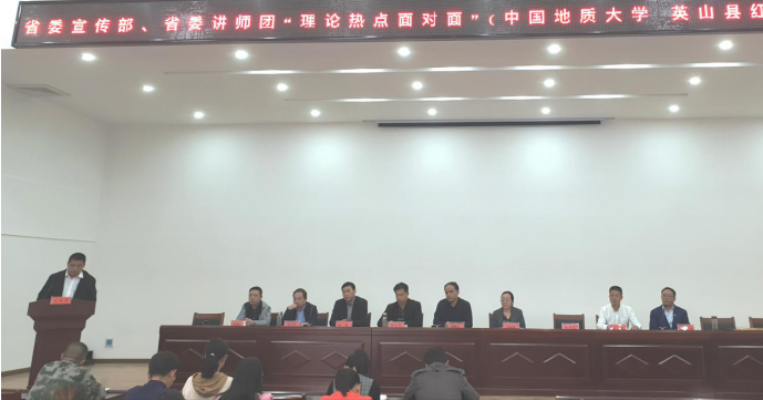 (通讯员孙东震)2019年11月1日,省委宣传部、省委讲师团、williamhill中国“理论热点面对面”示范点授牌仪式暨“不忘初心牢记使命”主题教育宣讲报告会在黄冈市英山县红山镇党员群众活动中心隆重举行。省委讲师团调研员胡秋春、姚官华,英山县宣传部副部长胡天堂,我校党委宣传部副部长陈华文、williamhill威廉希尔院长高翔莲教授、副院长阮一帆教授、办公室主任胡雪黎,红山镇党委书记陈琼、镇宣传委员徐新生等参加授牌仪式。该镇党员干部和部分群众代表约100人聆听了主题报告并参加授牌仪式。活动由徐新生宣传委员主持。