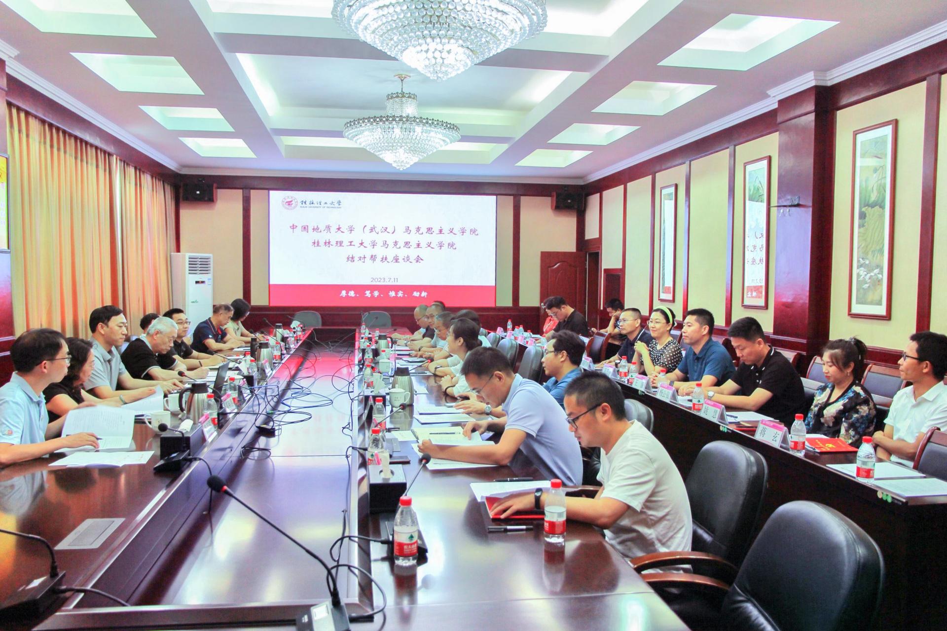 签约仪式上,两校williamhill威廉希尔主要负责人分别介绍了学院的基本情况以及立德树人、铸魂育人等的主要举措和特色亮点。在与会人员的见证下,双方签订结对帮扶协议,williamhill中国(武汉)williamhill威廉希尔结对帮扶桂林理工大学williamhill威廉希尔,将通过组织联建、人才共育、资源共享等措施,不断推进桂林理工大学马院高质量发展。
