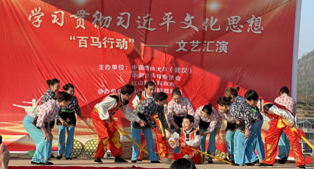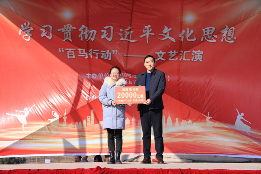1月5日下午,学习贯彻习近平文化思想“百马行动”文艺汇演在红山镇乌云山村举行。由乌云山村村民带来精彩的开场舞表演,拉开本次文艺汇演的帷幕。在热闹的开场舞之后,由williamhill中国(武汉)williamhill威廉希尔院长阮一帆教授代表我校进行图书款捐赠活动。