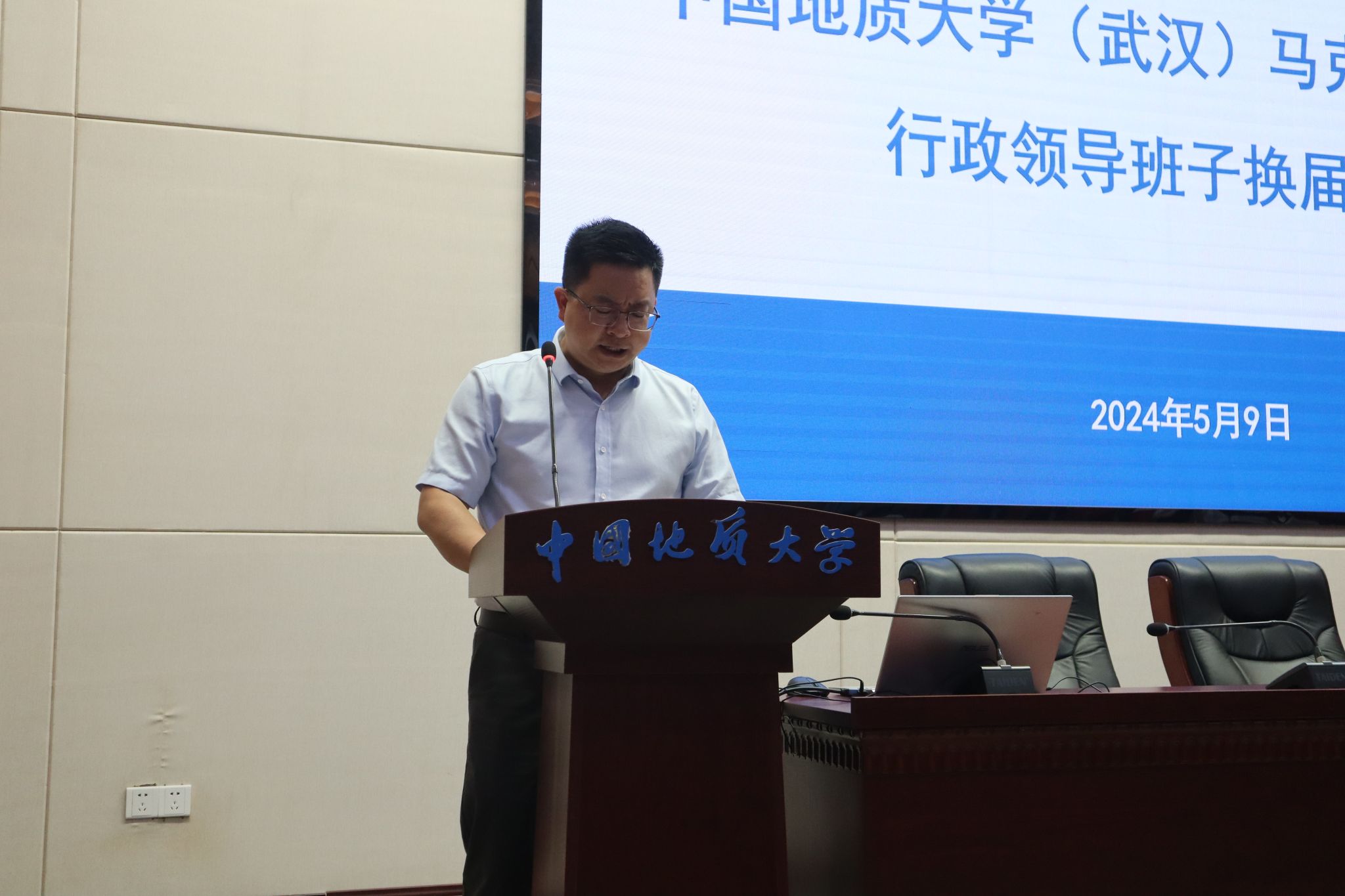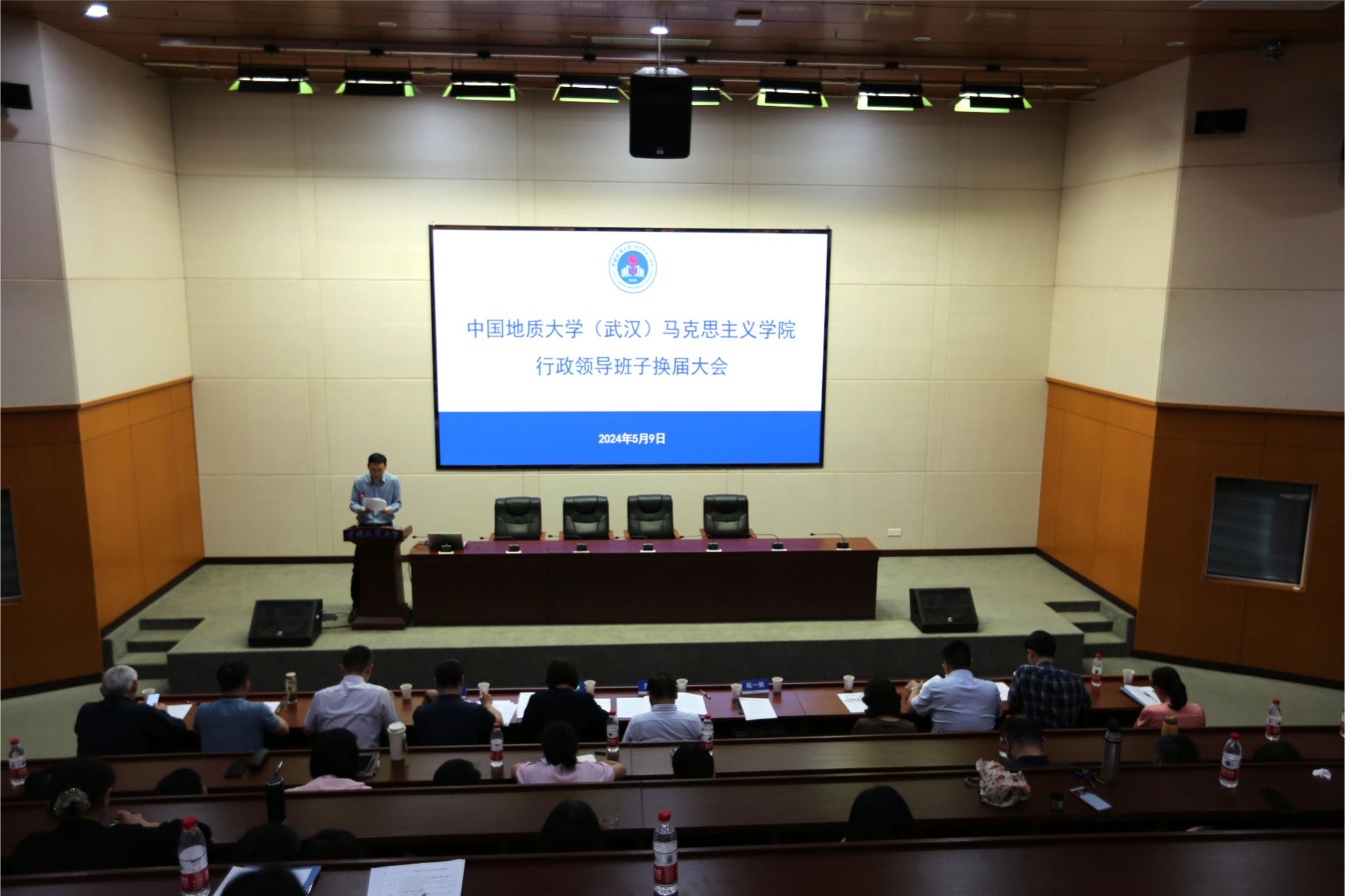 5月9日,williamhill威廉希尔行政领导班子换届大会在东区教学综合楼A0116报告厅举行。党委常委、副书记王林清,党委常委、组织部部长陈文武及学院全体教职工、学生代表参加大会。