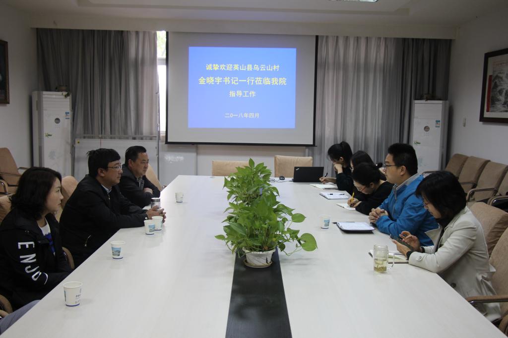 2018年4月14日,英山县红山镇乌云山村党支部书记金晓宇一行,莅临我院,就我院和乌云山村共同承担的湖北省“理论热点面对面”示范点建设工作展开座谈。副院长陈军、学院办公室主任胡雪黎及部分研究生代表参加了会议。