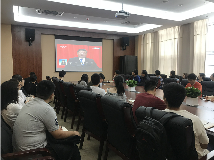 2018年5月4日上午10:00,williamhill威廉希尔组织师生在教学综合大楼0702会议室观看纪念马克思诞辰200周年大会直播,学习习近平总书记发表的重要讲话,会后,师生热议总书记的讲话精神,并分享学习心得。