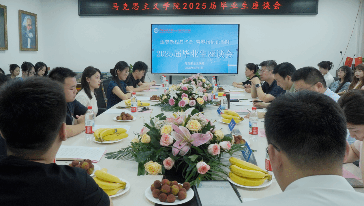 6月11日下午,我院2025届毕业生座谈会在东区综合楼B1013顺利召开。院长阮一帆,副院长陈军、孙文沛,党委副书记武彦斌,思政系主任李胜蓝,毕业班班主任罗丽娅,辅导员姚晟以及30余名本硕博毕业生代表齐聚一堂,共话大学生活与未来。座谈会由姚晟主持。